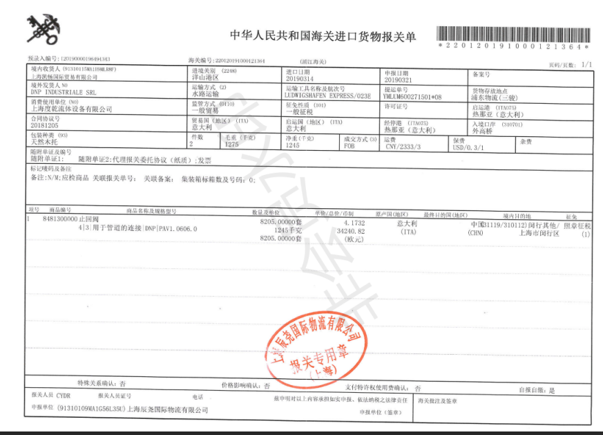 在此,再次声明:我们上海度乾流体设备有限公司,是意大利dnp液压快速接头中国区总代。下面是我们的报关单。有很多的客户不是从我们公司购买的产品,也不是从我们分销商手里购买产品。我们可以确定的和你们说:你们买到都是假货。